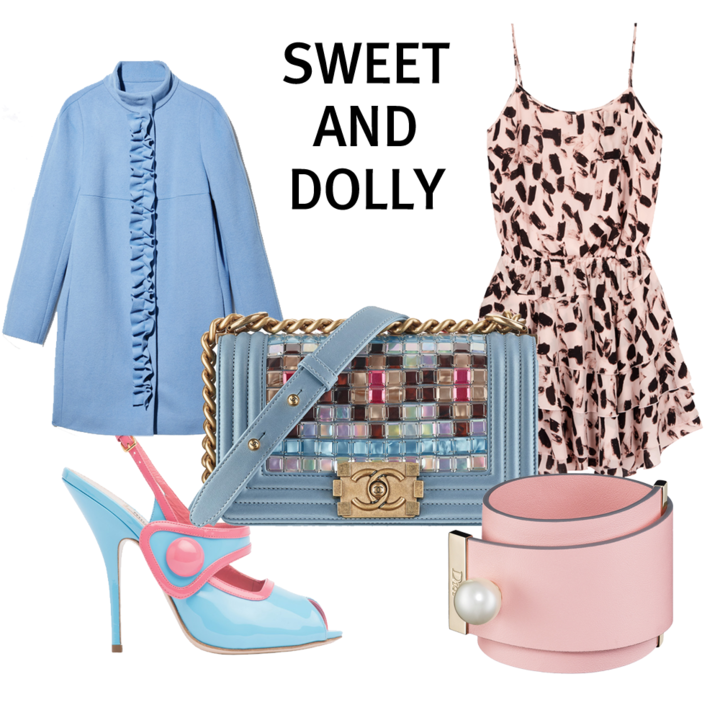 粉色、淺藍色蠟筆般的色彩及荷葉邊等刻意的打摺裝飾為主要特點