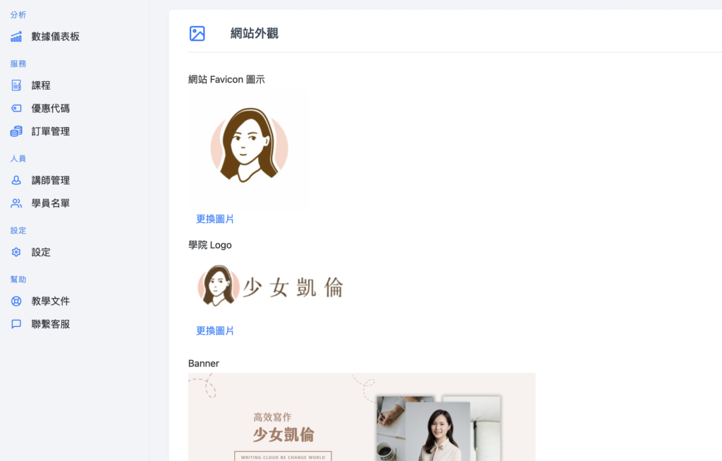 從上述這四張圖來看,基本上完全看不出來這是兩個網站。要做到這件事,竟然只要在開課快手後台新增logo及色系就好了!!(太智慧)